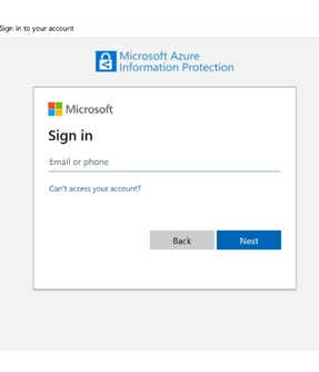 - Защитеният файл, който сте получили, трябва да бъде запаметен на диска на компютъра, след което с десен клавиш да отворите „Open with...” и да изберете Azure Information Protection Viewer. Визуализира се прозорец, който изисква “sign in” (виж фиг. 3).