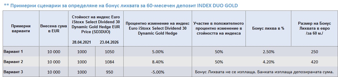 Структуриран Депозит INDEX DUO GOLD – с възможност за бонус лихва, обвързана с представянето на индекс