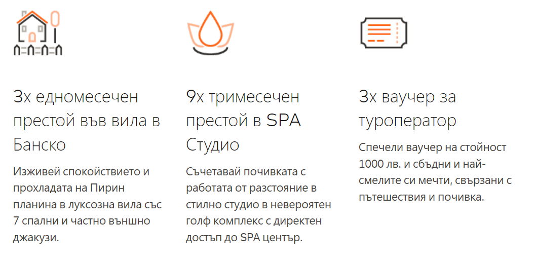 Колкото повече пъти изпълниш условието на кампанията, толкова по-голям ще бъде шансът за спечелване на някоя от наградите.